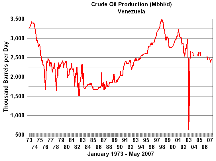 Crises in Iran and IraqEvents in Iran and Iraq led to another round of crude oil price increases in 1979 and 1980. The Iranian revolution resulted in the loss of 2 to 2.5 million barrels per day of oil production between November, 1978 and June, 1979. At one point production almost halted. While the Iranian revolution was the proximate cause of what would be the highest prices in post-WWII history, its impact on prices would have been limited and of relatively short duration had it not been for subsequent events. Shortly after the revolution production was up to 4 million barrels per day. Iran weakened by the revolution was invaded by Iraq in September, 1980. By November the combined production of both countries was only a million barrels per day and 6.5 million barrels per day less than a year before. As a consequence worldwide crude oil production was 10 percent lower than in 1979. The combination of the Iranian revolution and the Iraq-Iran War cause crude oil prices to more than double increasing from from $14 in 1978 to $35 per barrel in 1981. Twenty-six years later Iran's production is only two-thirds of the level reached under the government of Reza Pahlavi, the former Shah of Iran. Iraq's production remains about 1.5 million barrels below its peak before the Iraq-Iran War.