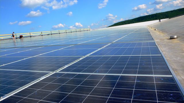 Concentrating solar power uses parabolic mirrors to focus the sun's energy on a single point, creating high temperatures that generate steam from a fluid. The steam spins a turbine, just as it would in a coal plant, which in turn generates electricity.