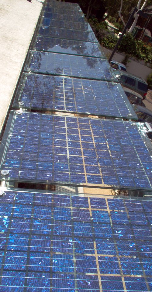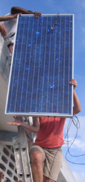 Right: A house with six 120 Watt solar panels from the hardware store Canadian Tire.