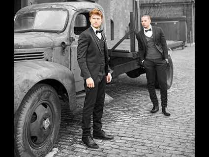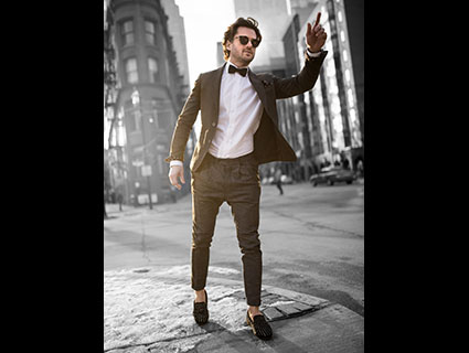From the choice of fabrics, to the bow ties, to the why the clothing is cut, to the choice of colours you can see the Edwardian inspiration in the bow ties and the classic cut of the suits. But it has been definitely been modernized with small changes to important details like the hem of the pants (raised and embellished), the cut of the pants (lowered and widened), the details on the jackets (different materials in the constructions of the body and sleeves and added embellishments). These pieces have one foot in the early 1900s and the other foot firmly entrenched in early 2000's, which seems a difficult feat, but comes off as stylish and forward thinking.