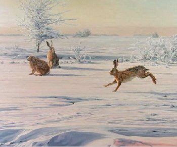 So the animals raced, but the weight of Polar Bear, Moose and Caribou was too much. They crashed through the ice and caused all the other animals to get caught in the icy cold water too. Beaver is a good swimmer, but he isn't used to the cold water because he usually sleeps in the winter. Polar Bear didn't mind the cold, but he was a very slow swimmer. Goose had been trying to fly across the river, but when the ice broke, he lost his footing and fell into the water too. Muskrat however was skilled at jumping. He jumped on top of the other animals and used them like stepping stones to cross over to where the ice was not broken. Then he ran safely to the other side. The rest of the animals followed more slowly. Goose came in last because it takes a long time for him to speed up to the speed necessary for him to fly. The final order of the animals was: Muskrat, Caribou, Gray Wolf, Hare, Polar Bear, Coyote, Moose, Grizzly, Fox, Loon, Beaver and Goose.