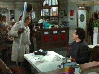 Frank Costanza: Many Christmases ago, I went to buy a doll for my son. I reached for the last one they had, but so did another man. As I rained blows upon him, I realized there had to be another way. Cosmo Kramer: What happened to the doll? Frank Costanza: It was destroyed. But out of that a new holiday was born: a Festivus for the rest of us! Cosmo Kramer: Is there a tree? Frank Costanza: No, instead, there's a pole. It requires no decoration. I find tinsel distracting. Frank Costanza: It's made from aluminum. Very high strength-to-weight ratio. Mr. Kruger: I find your belief system fascinating. Frank Costanza: And at the Festivus dinner, you gather your family around, and tell them all the ways they have disappointed you over the past year! Frank Costanza: I got a lot of problems with you people! And now, you're gonna hear about it. You, Kruger. My son tells me your company STINKS!