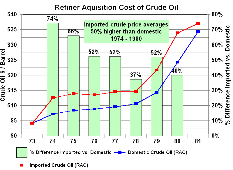 US Oil Price Controls - Bad Policy?The rapid increase in crude prices from 1973 to 1981 would have been much less were it not for United States energy policy during the post Embargo period. The US imposed price controls on domestically produced oil in an attempt to lessen the impact of the 1973-74 price increase. The obvious result of the price controls was that U.S. consumers of crude oil paid about 50 percent more for imports than domestic production and U.S producers received less than world market price. In effect, the domestic petroleum industry was subsidizing the U.s. consumer. Did the policy achieve its goal? In the short term, the recession induced by the 1973-1974 crude oil price rise was less because U.S. consumers faced lower prices than the rest of the world. However, it had other effects as well. In the absence of price controls U.S. exploration and production would certainly have been significantly greater. Higher petroleum prices faced by consumers would have resulted in lower rates of consumption: automobiles would have had higher miles per gallon sooner, homes and commercial buildings would have been better insulated and improvements in industrial energy efficiency would have been greater than they were during this period. As a consequence, the United States would have been less dependent on imports in 1979-1980 and the price increase in response to Iranian and Iraqi supply interruptions would have been significantly less.