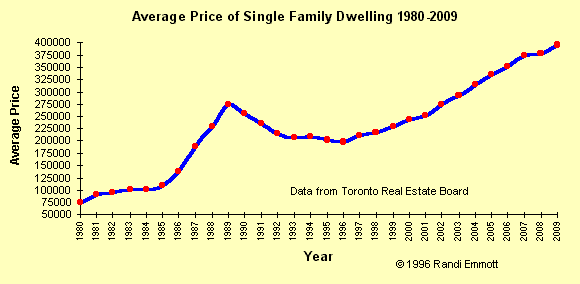 Average Selling Price 1980-2009: In this chart you can see the rise in the average sale price during the early Mulroney years, followed by a collapse in the 1990 to 1993 period. Prices in recent years (2006 onwards) under the Harper government have leveled off a bit, but continue to rise slowly.