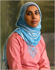 “It’s a question we ask ourselves all the time,” said Mary Darling, one of the show’s three executive producers and an American who has lived in Canada for the last decade. “If 9/11 is still too raw, it might not work,” she said. There is the other side of that coin too — what will Muslims think? — which the show’s creators usually summarize in one long sentence that mentions the uproar prompted by Salman Rushdie as well as the Danish cartoons about the Prophet Muhammad. This concern stems from the almost automatic presumption that “to look at Muslims in an entertaining way is going to be controversial because they will riot in the streets,” said Al Rae, one of the show’s writers, who noted that he does research by bouncing potential scenarios off cab drivers here. Or as Amaar, the young man detained in the opening airport scene, puts it sardonically, “Muslims all over the world are known for their sense of humor.” The strongest insurance against outrage from the faithful is that “Little Mosque” is the brainchild of Zarqa Nawaz, a Canadian Muslim of Pakistani origin whose own assimilation, particularly after she left Toronto for Regina, Saskatchewan, 10 years ago, provides much of the comic fodder. “It rests on my shoulders to get the balance right between entertainment and representing the community in a reasonable way,” Ms. Nawaz, a 39-year-old mother of four, said in an interview here. “You have to push the boundaries so you can grow and evolve as a community.” During one recent episode being filmed at a neighborhood swimming pool, two Muslim characters who are normally veiled leave the changing room to discover that a man has replaced their usual female instructor. The horrified women lunge for bath towels to use as temporary hijabs, or veils, to cover their hair. Ms. Nawaz, veiled since she was in ninth grade, coached both actresses to be less relaxed. “I didn’t feel that they were panicked enough,” she said. “It’s a big deal for a hijab-wearing woman to be seen without one.” Ultimately the solution is found when, as the script describes, “Fatima comes out dressed in the Haz-Mat Islamic swimsuit.” The costume designer unearthed a swimsuit on the Internet from Jordan that covers her from scalp to ankle and had it shipped to Canada. The struggle over what constitutes modest dress is central to the show. When a Muslim girl flounces into her immigrant father’s presence with her navel showing, he recoils in horror, saying, “You look like a Protestant.”