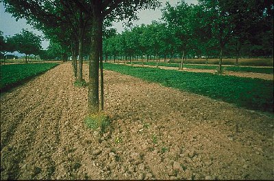 Intercropping: These farmers CAN see the forest for the treesA farming practice that results in better soil, more earthworms, much higher capture of carbon dioxide, less nitrogen runoff, more birds and insects, and double the crop yield in drought years – it sounds too good to be true. Yet this is exactly what experiments at Guelph University are suggesting. The most astonishing conclusion is that if farmers adopted the practice throughout the 455,000 square kilometres of marginal or degraded land currently being farmed, Canada could come within a hair's breadth of meeting its Kyoto commitment with an 18.6 per cent reduction in the nation's CO2 emissions. The practice is called intercropping – planting crops between rows of trees. At Guelph, the rows of trees are 12.5 metres to 15 metres apart, and this year the crop is soybeans. The experiments have been going on for several years, using different crops and the results have been compared to identical crops grown in open fields. Andrew Gordon, professor of forest ecology and agroforestry, has been supervising the experiments, assisted by Naresh Thevathasan, manager of agroforestry research and development at the Ontario Agricultural College in Guelph. Thevathasan explains that the trees take up about 10 per cent of the intercropped area. Yet in drought years, the yield has been double that in the open area, because the trees helped retain moisture in the ground. In normal and wet years, the yield in the actual growing areas has been identical, but because of the space taken by trees, the yield for the total area, trees included, has been about 10 per cent lower. Accompanied by two graduate students, Thevathasan gave me a tour. The soybean plants were ripening to a buttery yellow and a row of poplars stretched as far as I could see over a gentle rise. The trunks were a good 40 centimetres across at hip height and the trees were roughly 13 metres high. Fast-growing poplars can reach this size in 12 years, Thevathasan says. A couple of years ago, some were sold for $100 to $150 a tree.