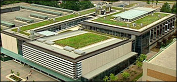 Europe Sets the Standards German green builders are leading the world in the design and construction of green roofs, which capture and store huge amounts of water that would otherwise increase flooding. According to Greenroofs.org, these living structures capture 70 to 90 percent of the rainwater that falls during the summer months. Over 12 percent of all flat roofs in Germany are now green roofs, and the green roof industry in Germany is growing 15 percent per year. To combat pollution from coal-burning power plants, which have caused widespread allergy problems and acid rain, German engineers have designed building-integrated photovoltaics to capture solar energy and reduce coal energy use. The German Mont-Cenis Academy features the world’s largest roof-integrated photovoltaic system, which produces electricity at 2.5 times the building’s consumption. In addition, the Passivhaus-Institut in Darm-stadt provides rigorous, voluntary standards for ultra-low energy buildings. There are now more than 6,000 Passive House buildings in Europe. “The Netherlands is very concerned about global warming,” says Kirsten Ritchie, director of environmental claims for Scientific Certification Systems. “Much of the country is below sea level or just above it. Almost of necessity, the Dutch have become leaders in energy efficiency, renewable energy sources and urban planning.” In the Netherlands, government buildings, universities and banks have taken the lead in green building. Britain, too, has been a leader in green building. In fact, Britain’s environmental assessment system for buildings, BREEAM, was the first in the world. It has also been the most successfully embraced rating system, used to assess 20 to 25 percent of new buildings in England. Most of the push for green building in Britain has been from the government through regulations, tax incentives and support for research. Like the Nether-lands, Britain’s major green buildings are mostly governmental and university buildings, including the offices of the Parliament and the University Library in Coventry.
