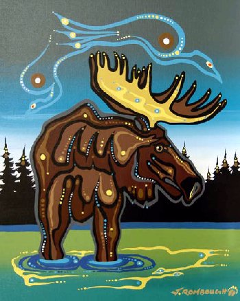 Created by Charles Moffat, a Canadian Artist/Writer. Many years ago, before my grandfather's grandfather's time, the Great Spirit looked down and saw a group of animals on the side of a ice-covered river. The animals were arguing over who was the best. Polar Bear was the biggest, Loon and Goose could both fly, Gray Wolf was the best hunter, Fox and Coyote were arguably the smartest/wisest, and so on. Great Spirit didn't want the animals to argue, so instead he decided to hold a contest to settle the dispute. He explained to the animals, that each animal during their time and place is the best. Sometimes Polar Bear is the best, and sometimes Muskrat is the best. He declared that the animals should race across the icy river, and whatever the order they arrived in, that would be the order in which they are best.