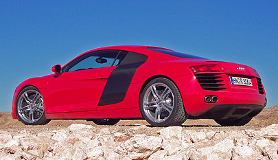 Two styling features stand out. One is the LED daytime running lights, a string of bright dots surrounding the headlight openings that gives the car a stunning frontal view at night. Later in the year, full LED headlights, billed as an industry first, will be available. More controversial is the so-called "side plate" behind the rear doors, which looks like a patch over the body work. It can be ordered in various trim finishes, including contrasting paint colour, carbon fibre and body colour. "The wheelbase on the R8 is quite long for a sports car," added Potthoff. "We did that to get good interior space. But we felt it needed something to break up the expanse of the body side, and also to highlight the air intakes to announce that this is a mid-engined car." The face and tail views also stress the car's low profile and width. The R8 is indeed quite spacious inside. Audi claims that two golf bags can even fit behind the seats. With clubs in them? Well, almost – one bag fits, but two will completely obscure the rear window. Otherwise, the interior is a delight, visually and functionally. (Audi's ownership of Lamborghini has benefited the Italian company immensely, particularly in interior fit and finish.) Power is provided by a direct-injected version of Audi's 4.2-litre V8, most closely related to that in the RS4. In the R8 it gets a dry sump: there's no oil pan as such; the lubricating oil is collected in a separate tank and pumped back into the engine. This race-bred technology reduces engine height and hence gives the car a lower centre of gravity. Either a manual or paddle-activated electronically shifted transmission, both six-speed, can be ordered. Audi claims a 0-to-100 km/h sprint time of 4.6 seconds, and a top speed of 301 km/h. The double-wishbone front and rear suspension can be ordered with magnetic ride, a variation of the Delphi system used in Corvette and various Cadillacs. Either ride comfort or handling can be emphasized, and the system really works. A full day booting around the Valley of Fire State Park east of Sin City, plus a handful of laps on a handling track set up at Las Vegas International Speedway, gave us a reasonable peek into the R8's nature. Audis are mainly about style, refinement and comfort. Performance, too, but (with a few exception) not hard-edged brutality. So while the R8 goes and handles, it doesn't beat you up. It could well be a daily driver. At cruising speed the car is remarkably quiet. Lean on it and the exhaust takes on a purposeful bellow – not the banshee shriek of the Lamborghini V10. Driving near the lofty 8250 r.p.m. red line in a tunnel with the windows down is aural magic. The velvet-glove ambiance, plus the grip provided by the four-wheel drive, makes the car feel less fast than it is. The system directs anywhere from 10 to 35 per cent of the torque to the front wheels, inducing understeer as the basic handling characteristic. Safer and more stable than the tail happiness of some competitors, but perhaps not quite as entertaining. The R8 arrives in Europe in mid-year, and on our shores this fall in very limited numbers (fewer than 100). Canadian pricing is not yet firm, but a reasonably equipped model should run in the $140,000 range – right up against a Porsche 911 Carrera 4, perceived as the main rival.