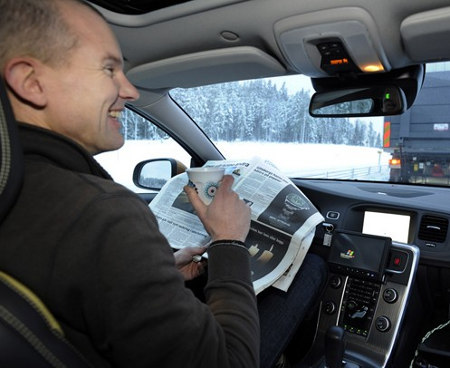 Well, that future isn't so far away. The Volvo Car Corporation is developing self-driving cars which cater to young consumers who are too addicted to tweeting, texting and updating Facebook to want to drive a car, much less purchase one. In recent years the percentage of people who prefer to take buses, subway or even bicycle to work has gone up, partially fuelled by high oil prices but also fuelled by cities seeing higher demand for public transit. Volvo says in the future passengers with electronic gadgets will enjoy "all the multi-tasking possibilities of public transportation behind the wheel of your own car." "Teenagers look at cars with different, less traditional eyes than we, their parents, do," says Volvo CEO Stefan Jacoby. "When we regard the driver's seat as a symbol for freedom and mobility, they see the only place where they can't be constantly connected. And many of them think that this constant connectivity is more important than having a driver's license and a car." Thus this explains why many teenagers and young adults have decided to stick to public transit or even bicycles. Thus having cars which are self-driving and autonomous cars, which can steer, accelerate and brake automatically, requiring very little human interaction, seems to be the future of cars... And also holds the potential for preventing car accidents by removing human error. Volvo isn't the only ones doing this however. Other companies are also working on developing self-driving tech, but the concept needs one company to spearhead the movement (just like Toyota spearheaded hybrid cars) before other automakers will invest big bucks in getting the technology to the local auto dealership. Volvo is even pre-emptively advertising this technology and in September 2012 issued photos of a woman behind the wheel reading a magazine and engaged in conversation with a passenger — clearly letting the car take control. Part of this might also because of China, where everyone wants a car, but the streets are so clogged with them (and many new drivers are inexperienced). Volvo, which is owned by Chinese automaker Geely, is positioning itself as a pioneer in autonomous driving and wants to eventually start mass producing self-driving Volvos made in China. Volvo's self-driving car push also comes at a time when federal safety regulators are pushing for rules to control the proliferation of technology in vehicles. Distracted driving has become a top concern for the U.S. Department of Transportation, topping even drunk driving or driving under the influence of drugs/heavy medication. Volvo has been testing autonomous driving that requires very little human interaction. Their goal to make driving so easy a kid could do it simply by pressing a button for school, arriving at school and pressing another button for home before getting out of the car. The end result would be cars which effectively would ferry people to and fro with very little interaction.